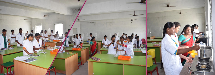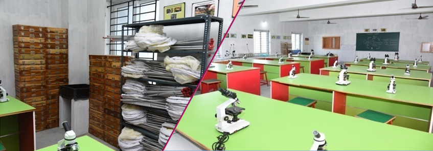 It has well – furnished tables to accommodate 40 students at a time. Microbiology Laboratory is well equipped with compound microscopes, Laminar air flow chamber, Autoclave, Advanced Microscopes, Incubator and Hot Air Oven.